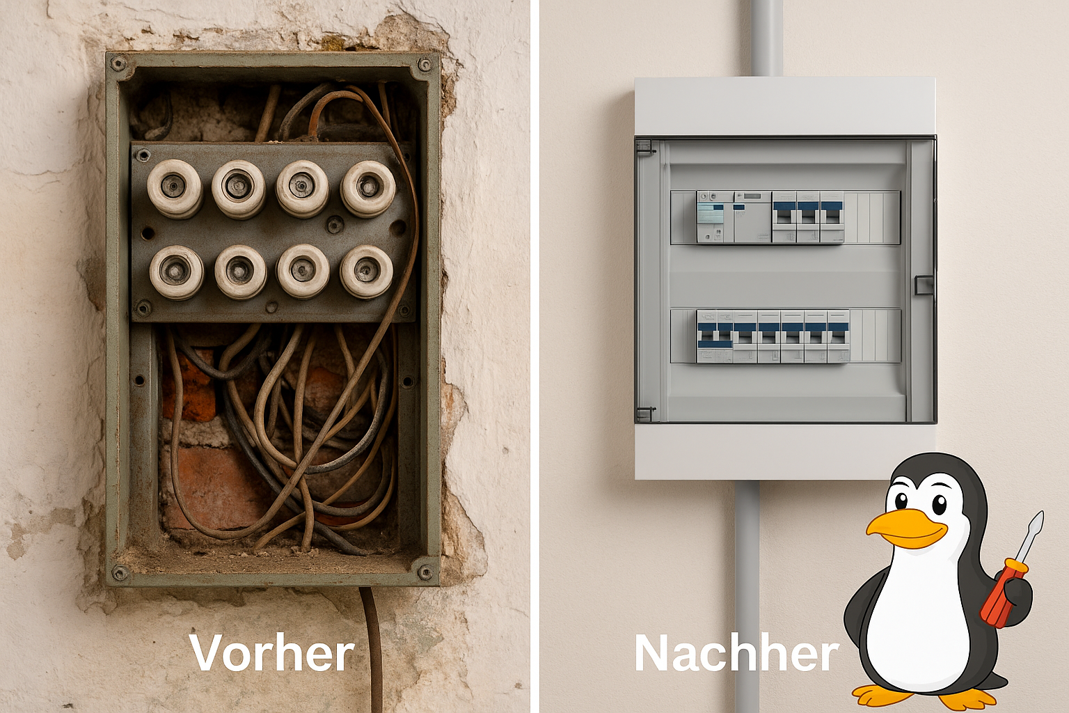 - Installation des neuen Sicherungskastens: Einbau eines modernen Sicherungssystems, das den aktuellen Normen und Standards entspricht.